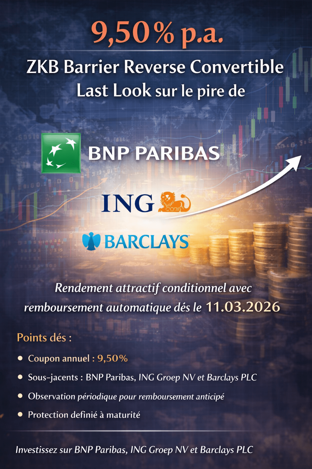 - 9.5% sur les banques européennes (BNP Paribas, ING et Barclays), protection 26 %.