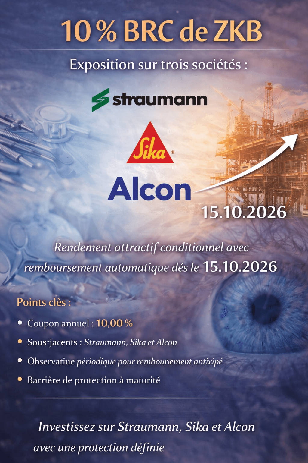 - 10 % sur des PME suisses, à savoir Straumann actif dans les implants dentaires, Sika spécialisé dans les matériaux de constructions et Alcon qui vend des lentilles de contact. La protection est de 25 %.